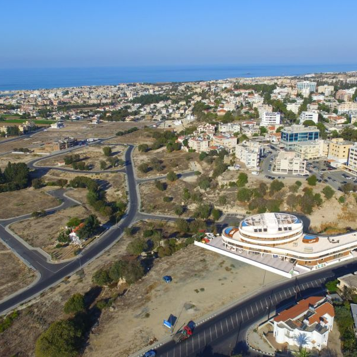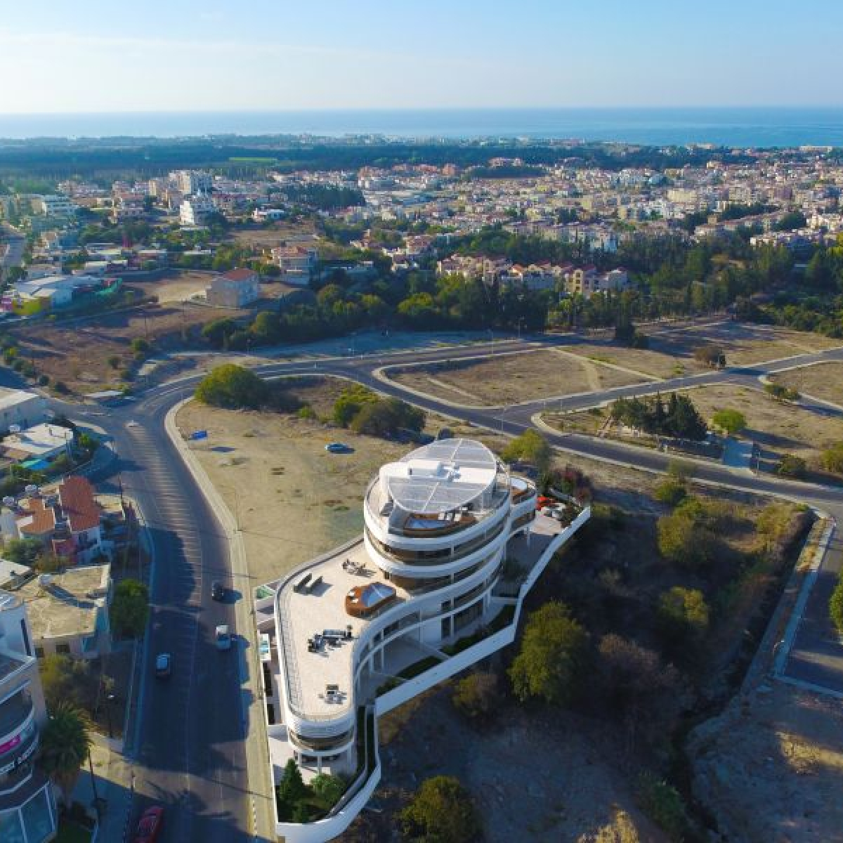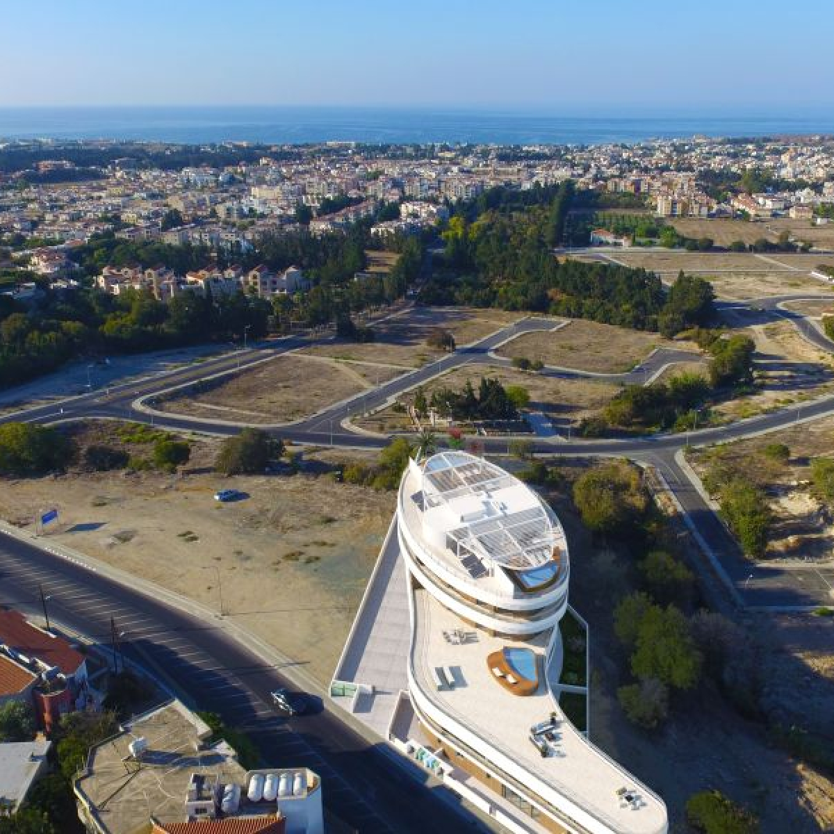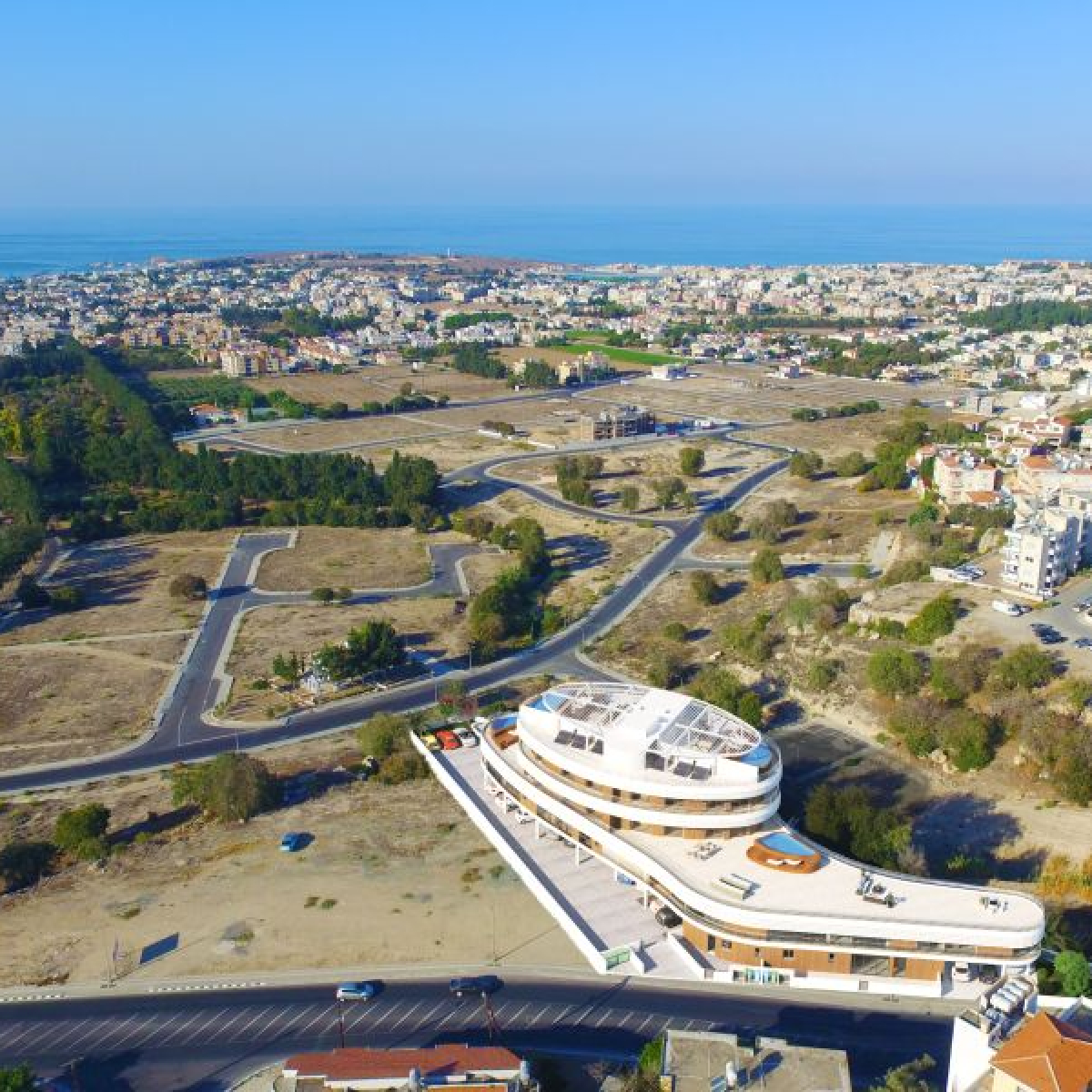 An unique oval shaped architectural development with 3- and 4-bedroom condos and apartments for sale in the city centre of Paphos in Cyprus.