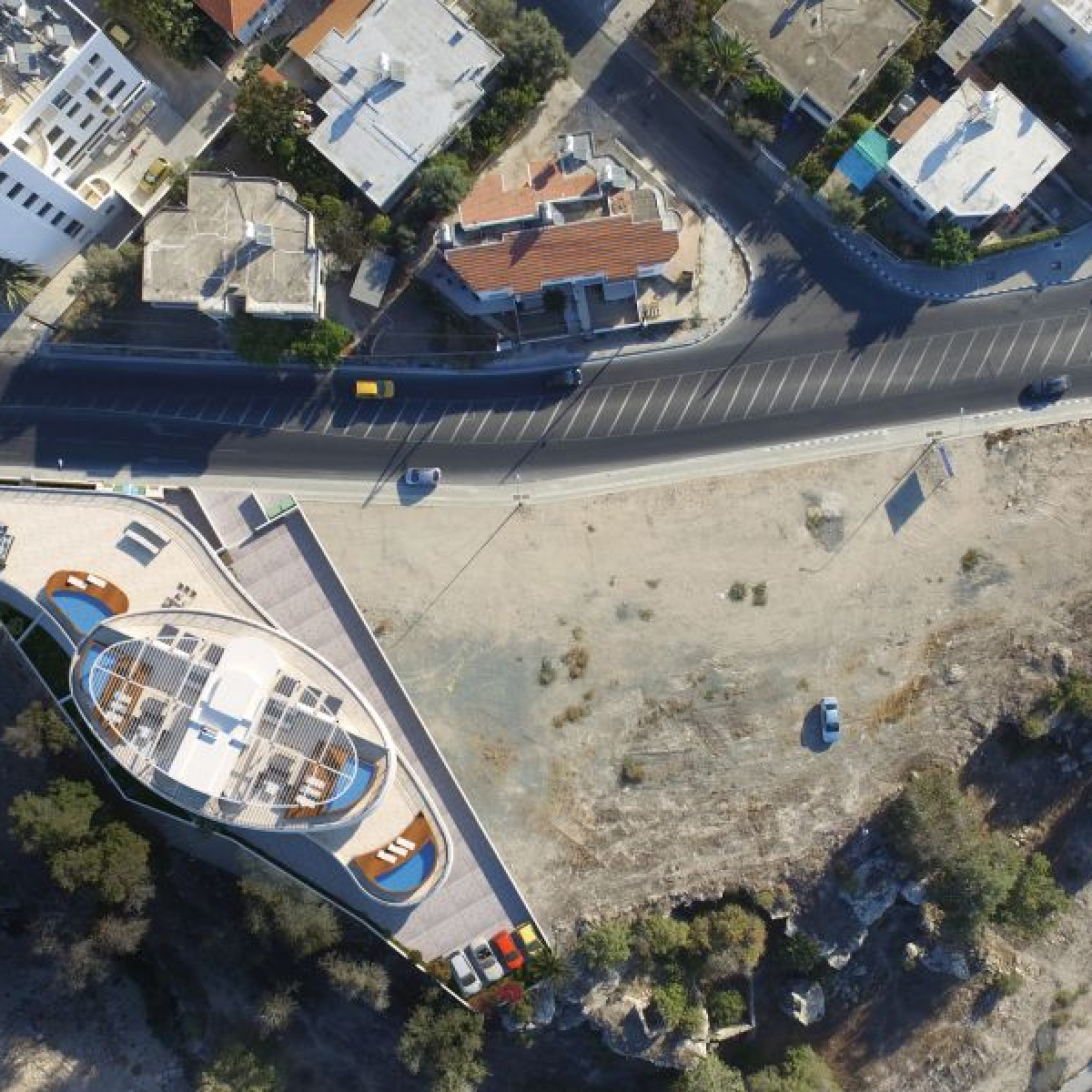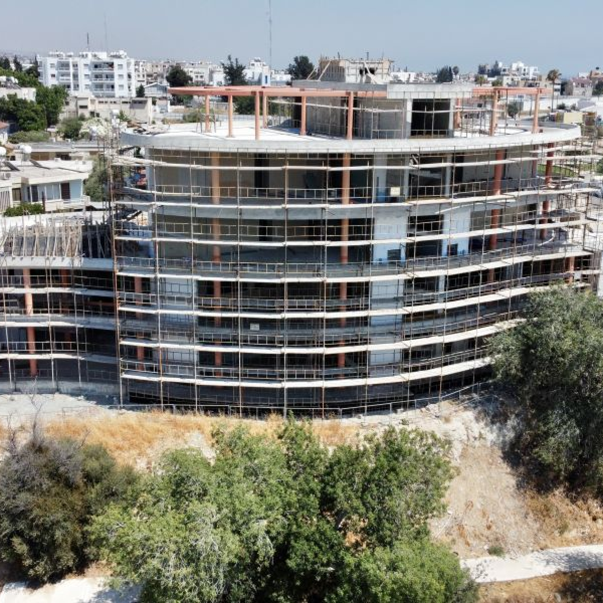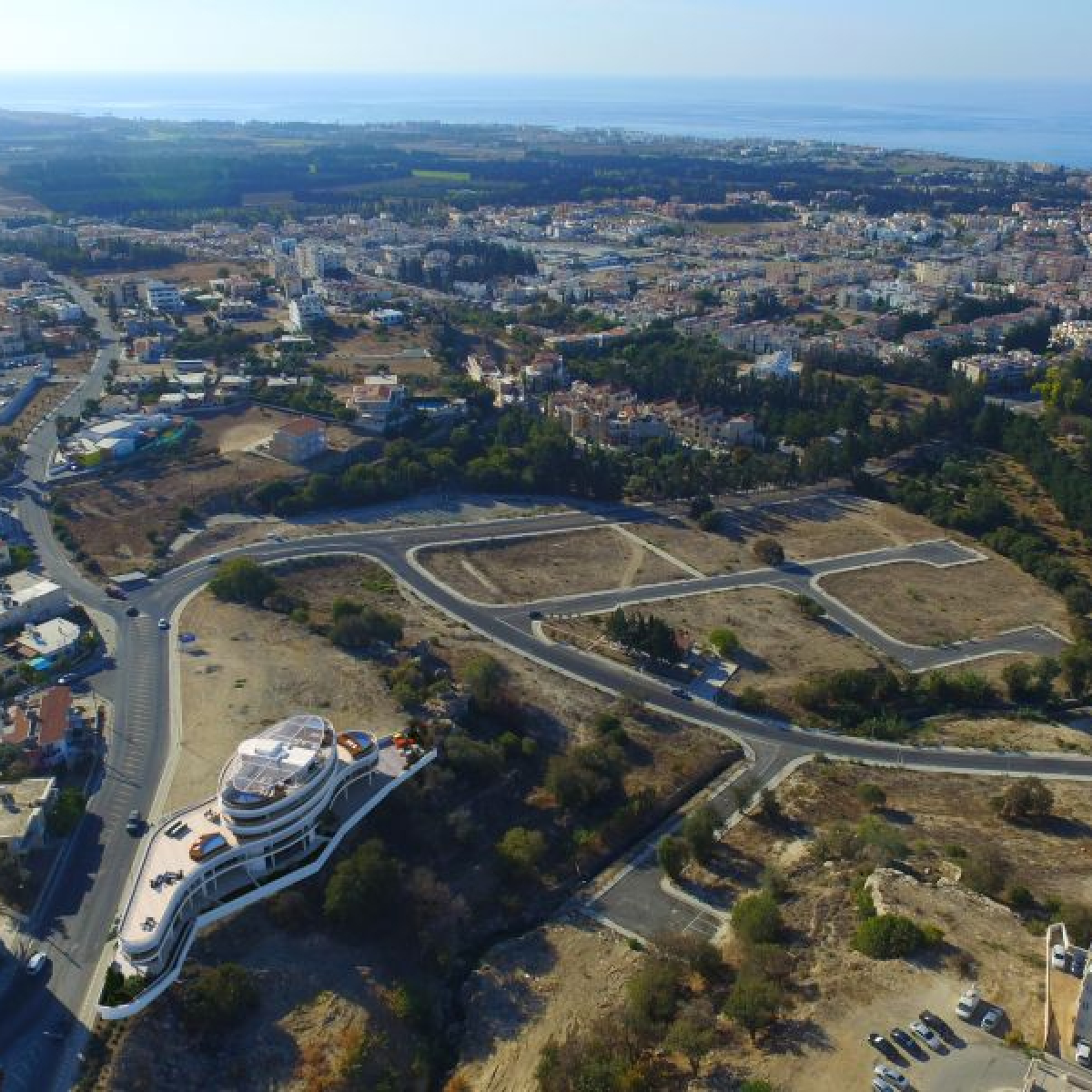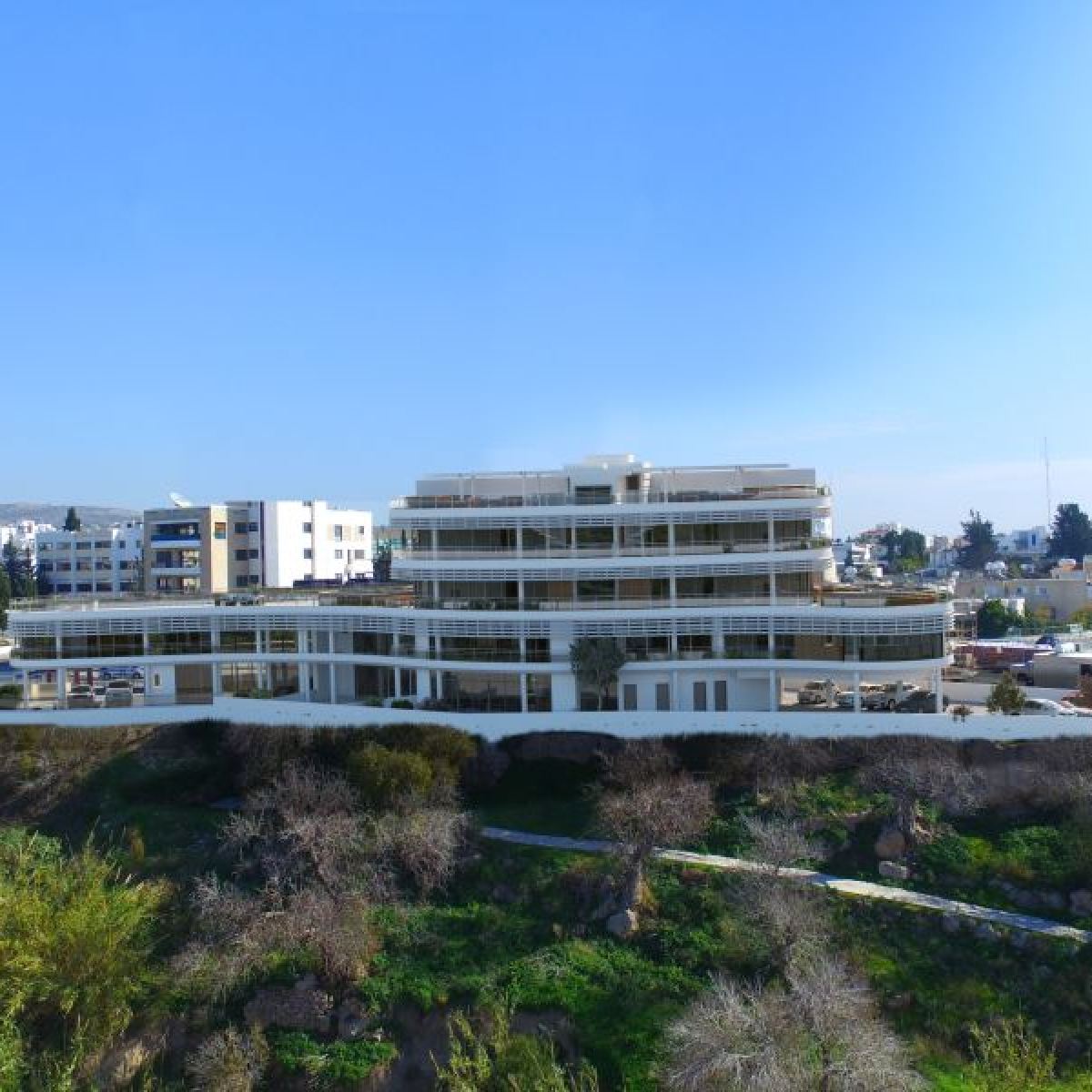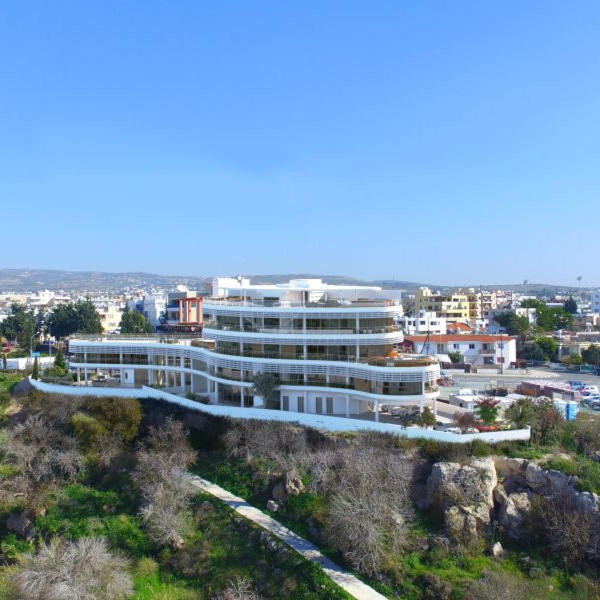 An unique oval shaped architectural development with 3- and 4-bedroom condos and apartments for sale in the city centre of Paphos in Cyprus.