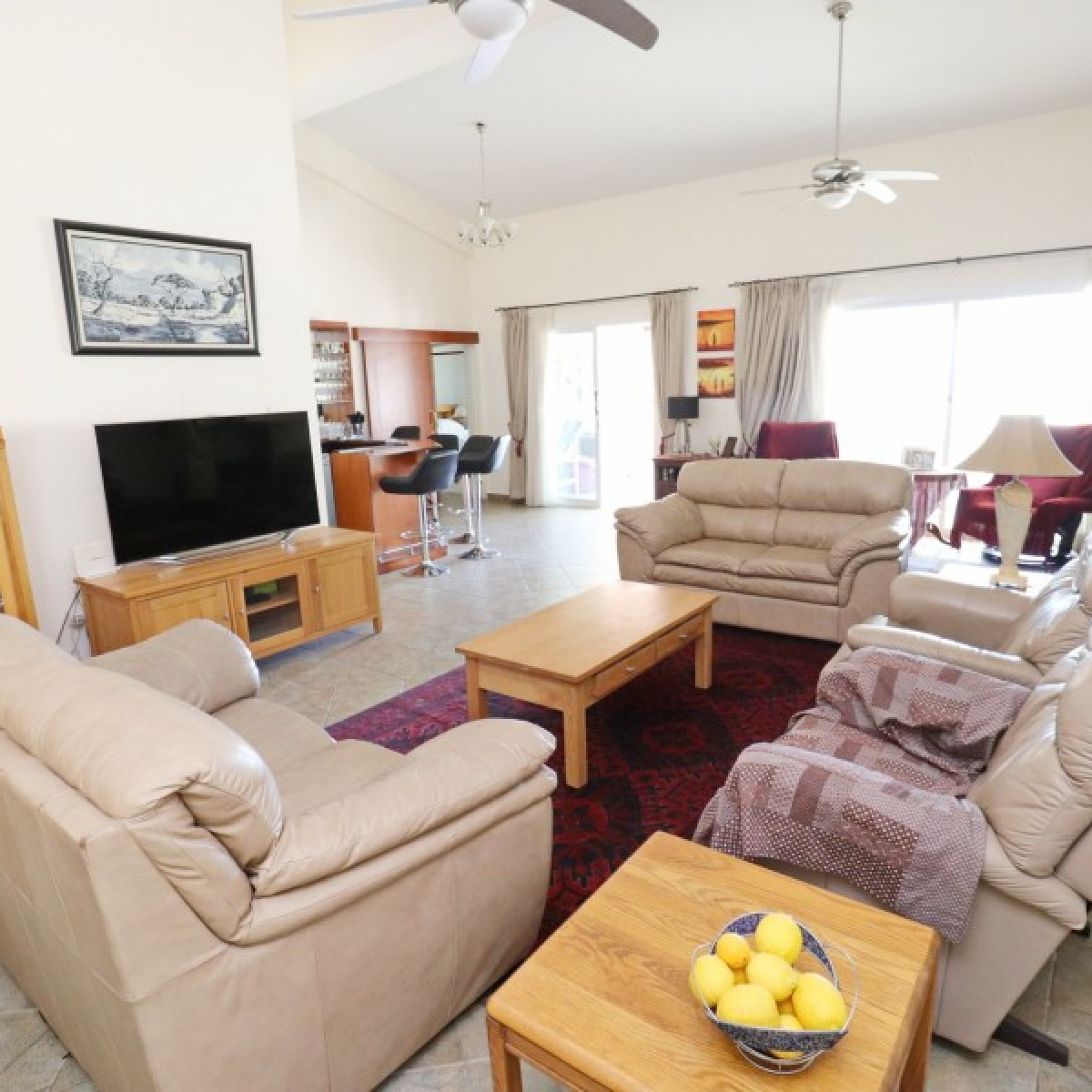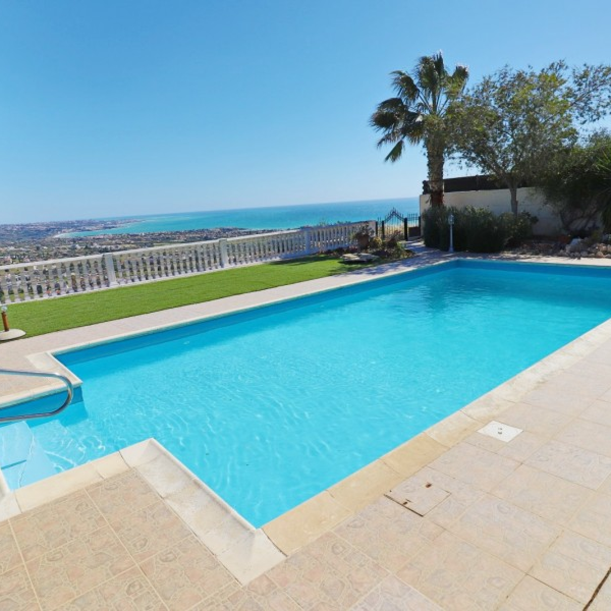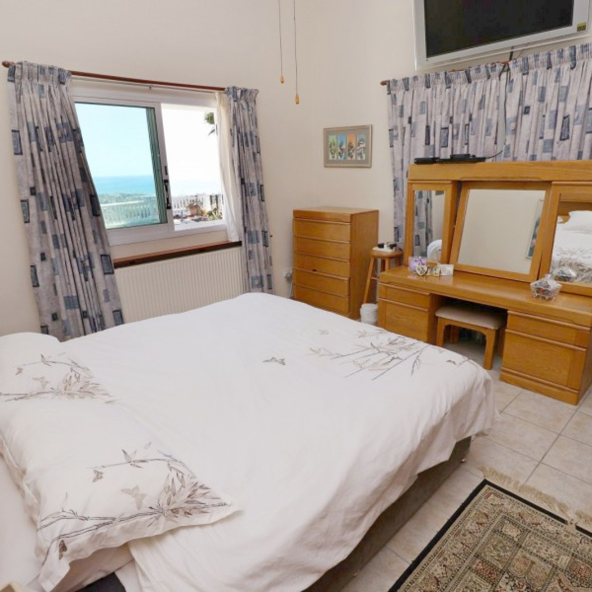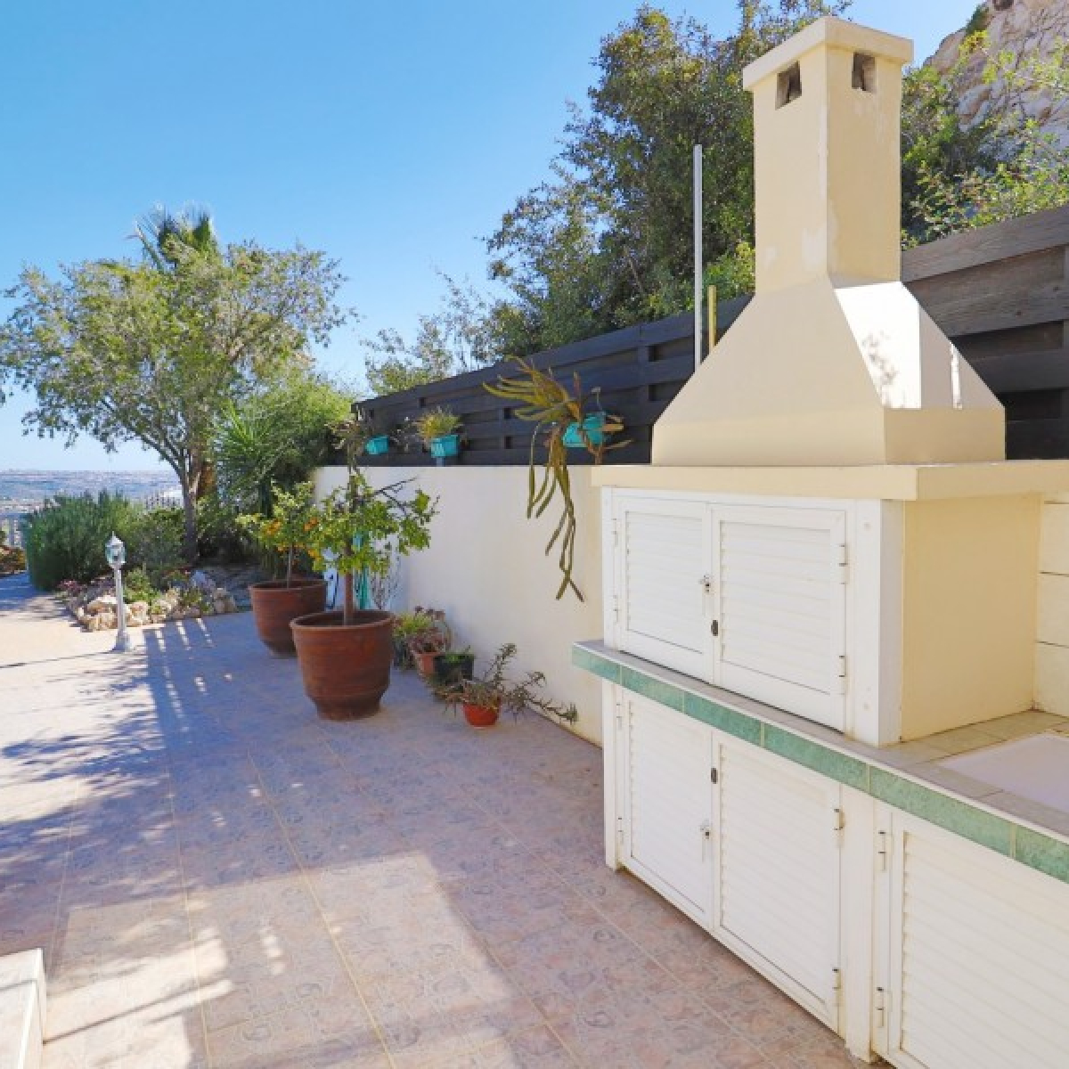 A Very Spacious 4 Bedroom Bungalow with Unobstructed Sea Views is For Sale in Peyia. This property is situated in a sought after neighborhood of Peyia, popular for the beautiful sea views and quietness, within easy access to Peyia Square and Coral Bay beach and resort. The views from this property are breathtaking !!! Parking your car in your own private covered parking you will find the entry way. Upon entering you will be greeted by the large entrance hall. On your left you will find the two very spacious bedrooms with the large family bathroom. There is also the master bedroom with en-suite facilities on the other side enjoying magnificent sea views. You will also find the office / study room. You will find the very spacious fully equipped kitchen with granite worktops with a kitchen island and the utility room. Ahead is the lounge and dining area with a secondary sitting area with a fireplace and a beautiful bar overlooking the Mediterranean Sea. From there sliding doors takes you to the covered veranda and outdoor area. Stepping outside it will take your breath away. You will find the large private heated swimming pool with perhaps the most beautiful sea, mountain and nature views. There is also a BBQ area, outdoor toilet and shower, plenty of storage space and sitting / relaxation areas. The property has the added benefit of having photovoltaic panels, central heating and unobstructed sea views. Overall this is a beautiful home, very well maintained with lots of extras, making this property ideal as a permanent residency or as a holiday retreat.