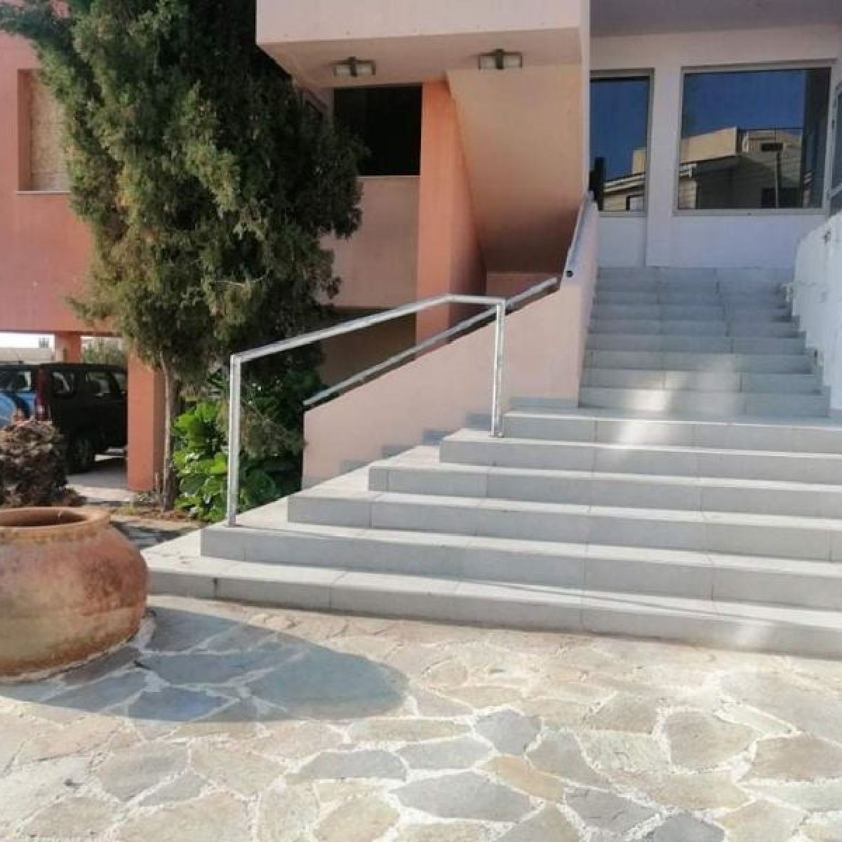 The building is within walking distance of infrastructure in the suburbs of Paphos. 2 storey building in Peyia, walking distance from shops, school, restaurants, bank.... 5 min drive to the sandy beaches of Coral Bay. The property is adjacent to public roads with a total frontage area of 40 meters (approx.). The building consists of ground floor, first floor and basement. Externally, it is a traditional stone building. Building area 705 sq.m (approx.), basement 160 sq.m (approx.), stone building 25 sq.m (approx.), open verandas 80 sq.m (approx.) and plot 1290 sq.m.