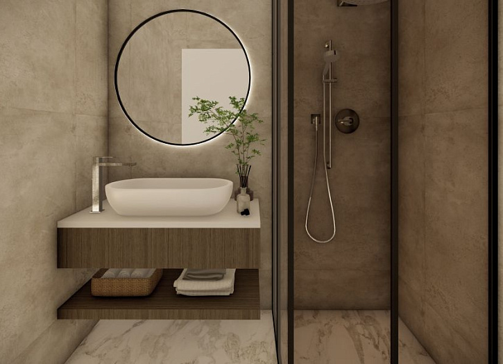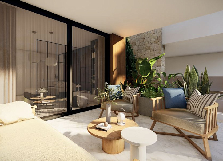 Comprising studios, one-bedroom, and two-bedroom units, each residence at "Venus" is strategically positioned to provide captivating sea views. Tucked away at the dead end of the plot, residents are shielded from main road noise, offering a tranquil retreat amidst a lush green landscape. The higher floors grant breathtaking panoramic views of the glistening Mediterranean, seamlessly blending the beauty of nature with modern living.